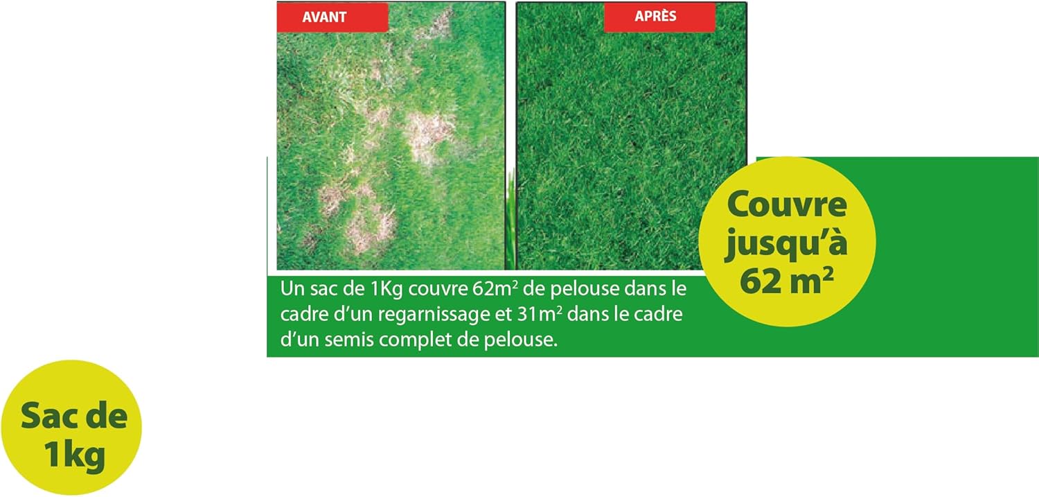 MYBO TV - Semances de gazon - Pousse partout en toutes saisons - Couvre jusqu'à 62m² - Résistant au gel et à la sécheresse - Pousse rapide - Résistant au piétinement - Sac de 1 kg