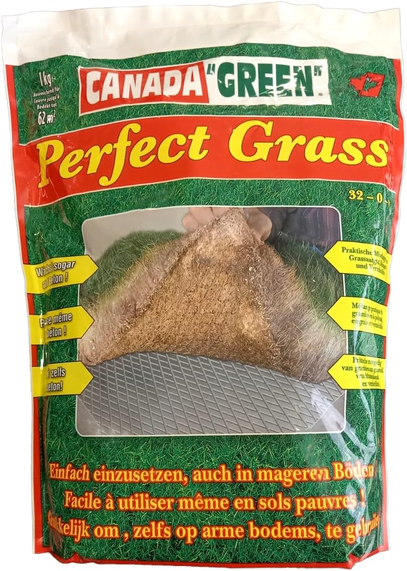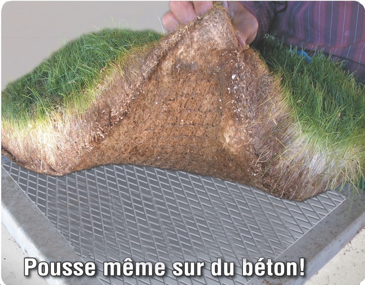 "Perfect Grass est le seul gazon qui pousse en toutes saisons, partout, sur tous supports, même à l’ombre ou sur du béton ! Grâce à une sélection de graines hautement résistantes, ce gazon est capable de pousser dans les conditions les plus difficiles. Il est également résistant : aux températures de -30°C (grand froid) à +40°C (forte chaleur) et aux passages intenses. Température optimale de germination : 18°C. Temps de pousse : de 5 à 10 jours. Composition : 50% Raygrass anglais vivace – 40% vermiculite – 10% fertilisant N32 P0 K0. Un sac de 1Kg couvre 62m2 de pelouse dans le cadre d’un regarnissage et 31m2 dans le cadre d’un semis complet de pelouse. "