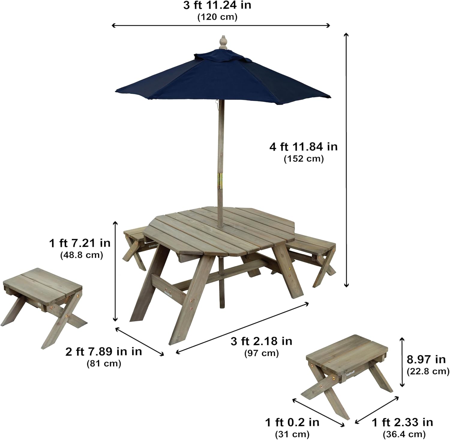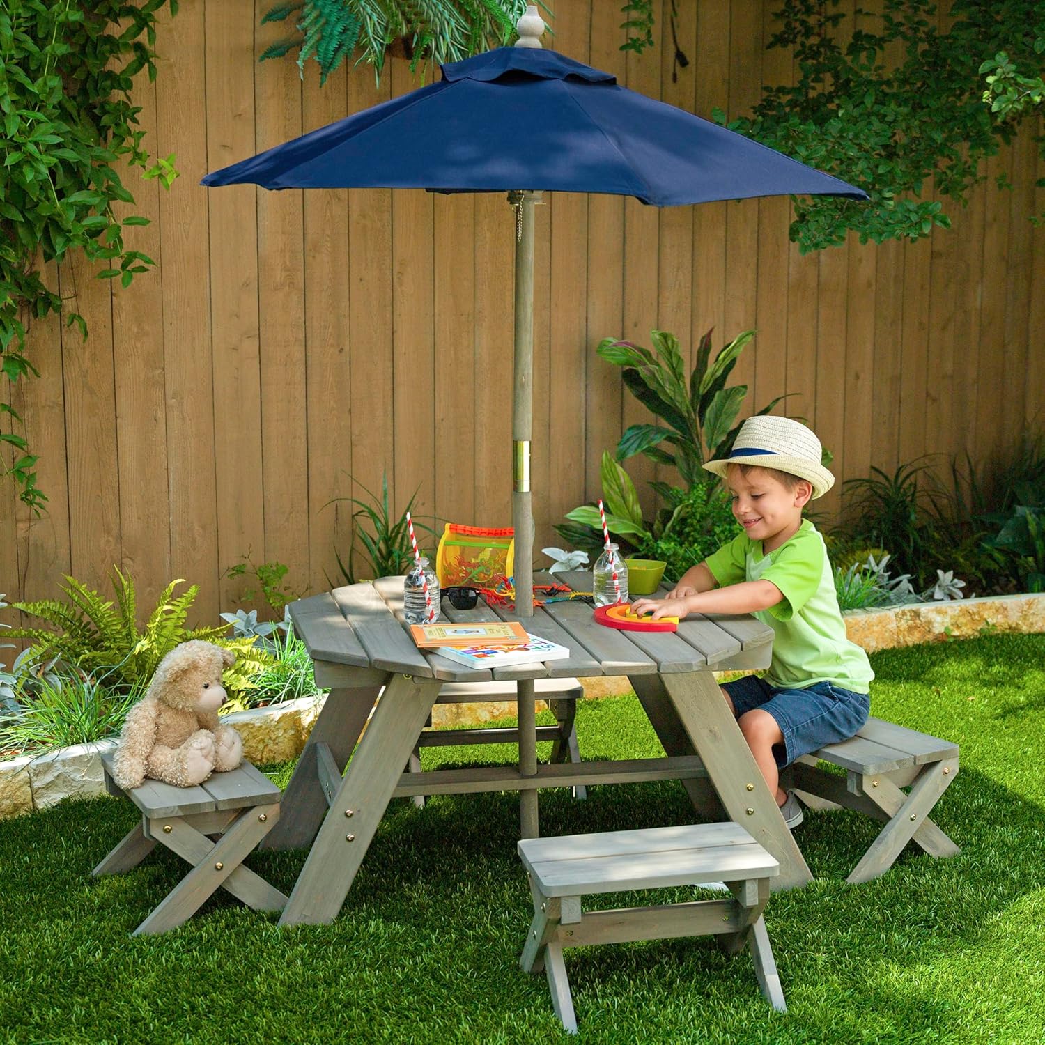 KidKraft table de jardin octogonale pour enfants – bois avec parasol et 4 tabourets